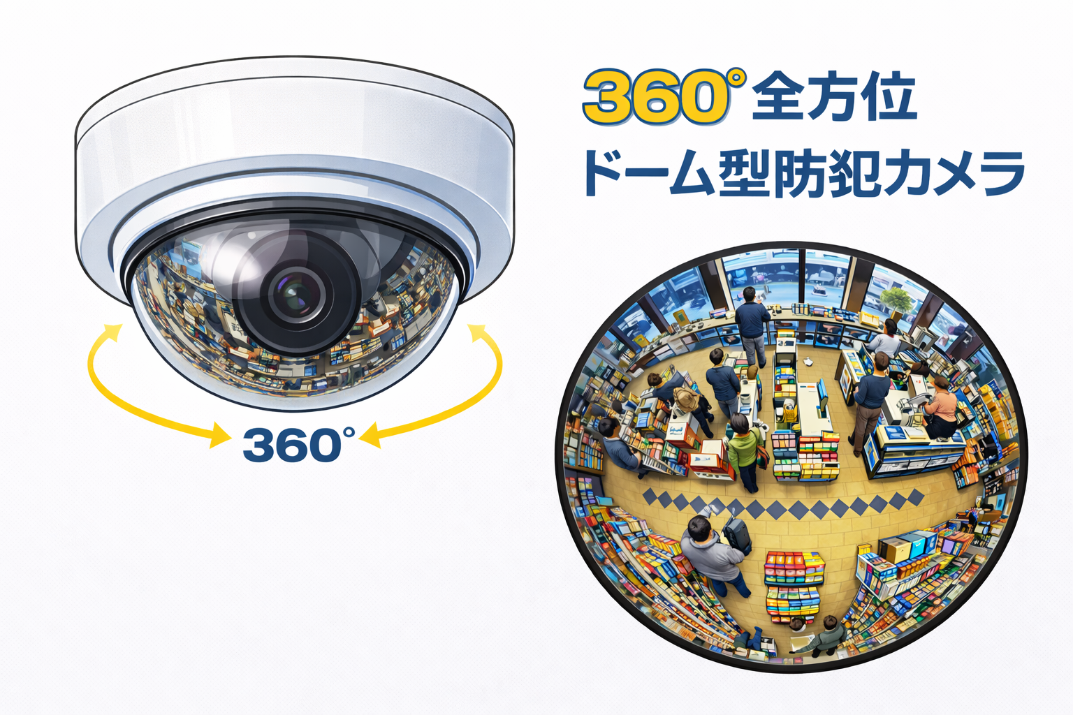 - ドーム型は「全方位型(360°)」の防犯カメラ