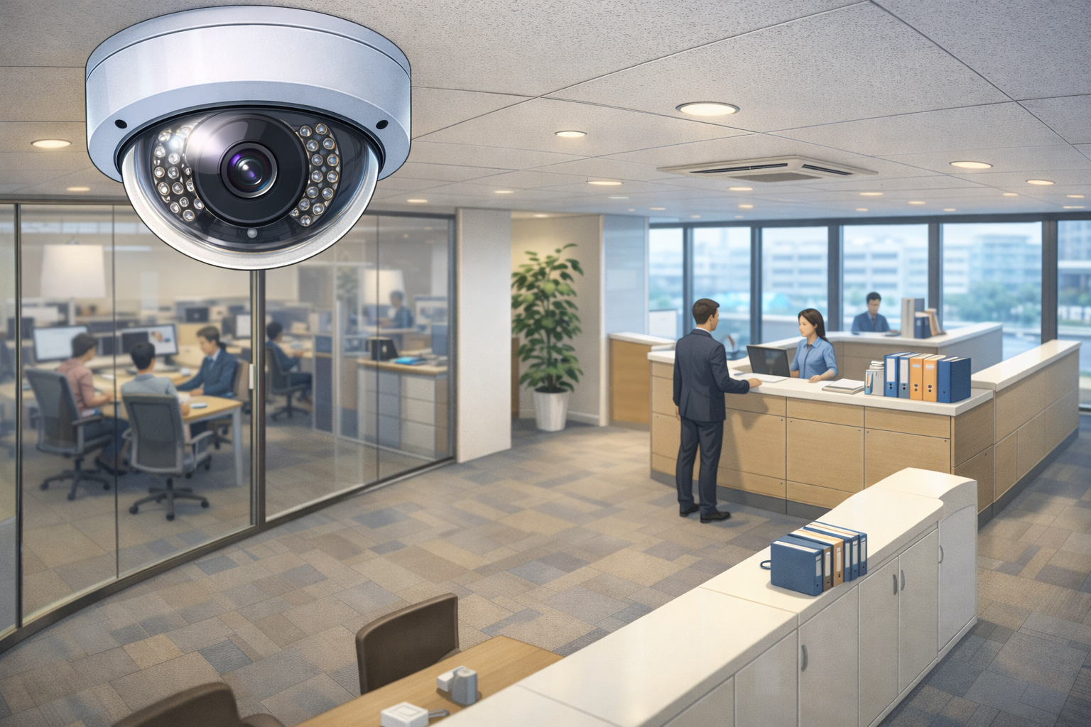 店舗やオフィスにおいて、ドーム型防犯カメラは見た目の圧迫感が少なく、死角も少ないため、効率よく監視を行いたい経営者にとって非常に魅力的です。