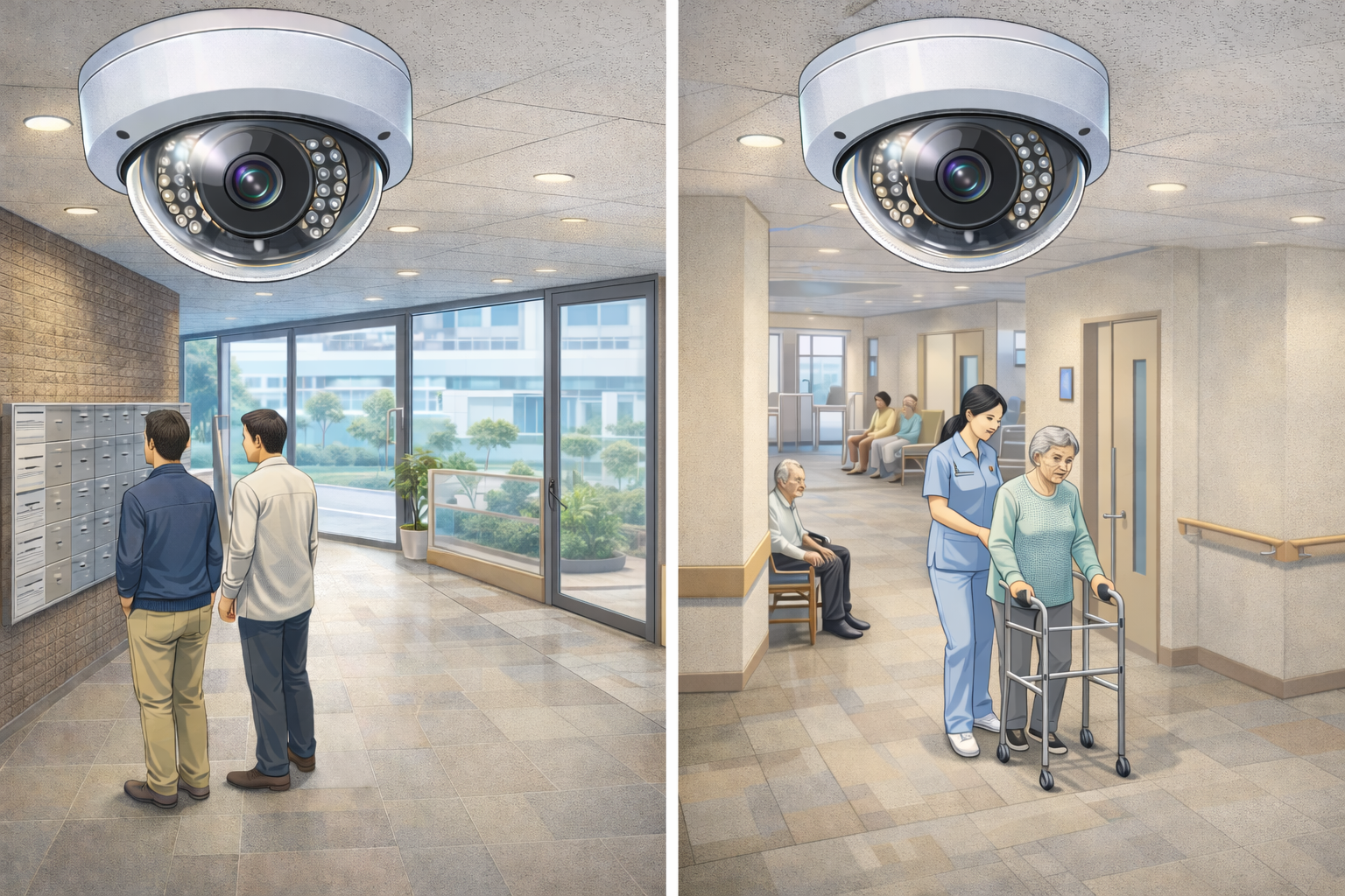 もし店舗やオフィス、病院や介護施設といったお客様や従業員が出入りする場所なら、ドーム型防犯カメラの導入をおすすめします。